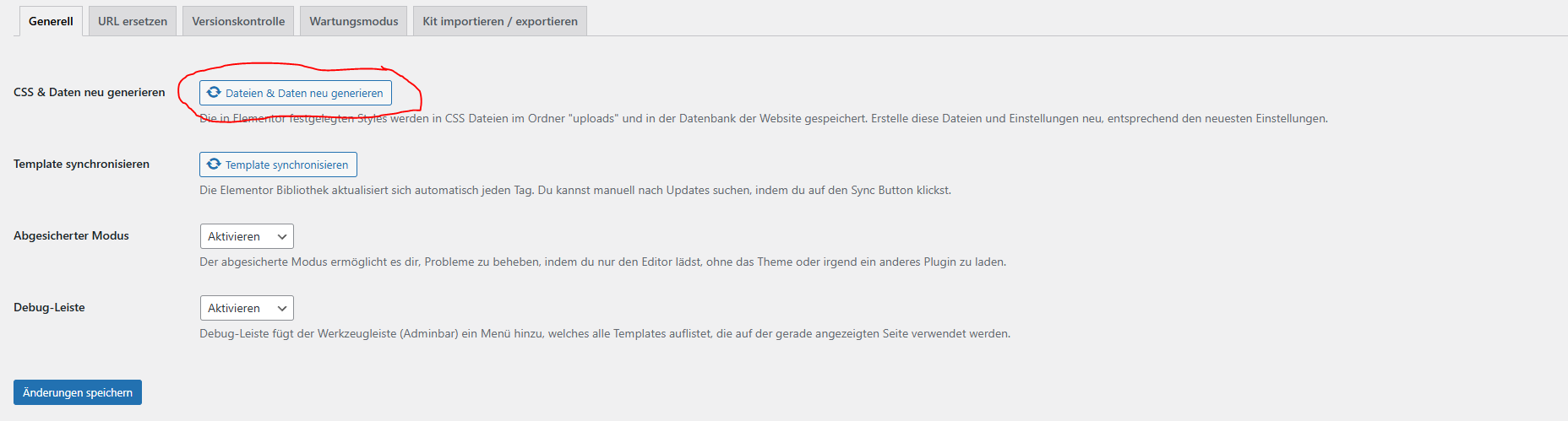Dashboard > Elementor > Werkzeuge