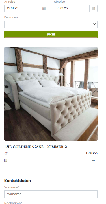 Auf dieser Seite wird ganz oben der Smoobu Script für die Suche nach verfügbaren Zimmern integriert: